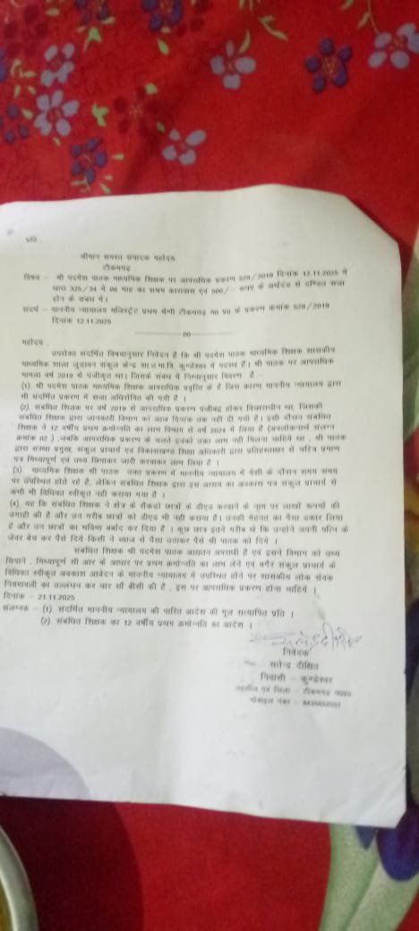 दिनांक 5.12.2025 को जितेंद्र राय अरविंद राय निवासी मिनोरा ने पुलिस अधीक्षक कार्यालय आकर आवेदन दिया कि मिनोरा निवासी पुष्पेंद्र अहिरवार की मृत्यु दिनांक 15 11 2025 को हो चुकी है लेकिन अहिरवार समाज के प्रभावशाली लोग एवं पुष्पेंद्र अहिरवार का भाई रामदीन अहिरवार मनगढ़ंत कहानी बनाकर 15 दिन बाद आवेदक गणों के विरुद्ध एक आवेदन पत्र पुलिस अधीक्षक टीकमगढ़ को इस आशय से दिया कि आवेदक गणों के द्वारा फर्जी तरीके से डरा धमका कर जमीन खरीदी गई आज दिनांक 5.12.2025 को पुलिस अधीक्षक कार्यालय आकर आवेदक जितेंद्र राय ने आवेदन दिया कि हमारे द्वारा 7 वर्ष पूर्व कृषि भूमि क्रय की गई थी यह भूमि मृतक पुष्पेंद्र अहिरवार एवं उनकी माता श्रीमती हरबू बाई अहिरवार के नाम पर थी जिसको मैंने पैसे देकर जमीन को खरीदा था लेकिन मृतक के परिवार वाले पुष्पेंद्र अहिरवार की मृत्यु उपरांत मेरे ऊपर दबाव बनाकर एवं झूठे प्रकरण में फंसाकर मुझसे पैसे लेना चाहते हैं जितेंद्र राय बताया कि यह बात मुझे मीडिया में प्रकाशित खबरों के माध्यम से पता लगी जिसको देखकर मै आज मैंने पुलिस अधीक्षक महोदय को निष्पक्ष जांच करने के लिए आवेदन दिया है जितेंद्र राय ने इस प्रकरण को फर्जी एवं मनगढ़ंत बताया है जितेंद्र राय ने प्रशासन से अपील की है कि इस मामले की निष्पक्ष जांच कराई जाए