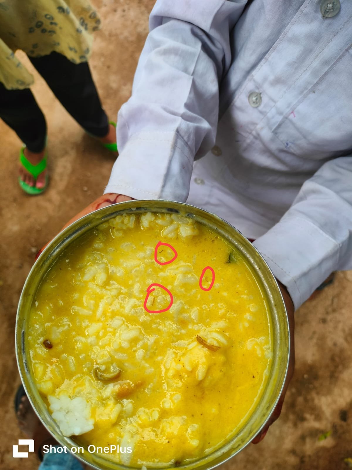 14 अगस्त दिन गुरुवार को रोज की तरह बच्चों को समूह के द्वारा भोजन दिया जा रहा था कुछ बच्चों ने जैसे भोजन खाने के लिए हाथ बढ़ाया तो बांटे गए भोजन कड़ी चावल में इल्ली दिखाई दी जैसे ही बच्चों ने भोजन में कीड़े देखे खाना खाने से इनकार करते हुए यह बात अपने शिक्षकों और अभिभावकों से कही